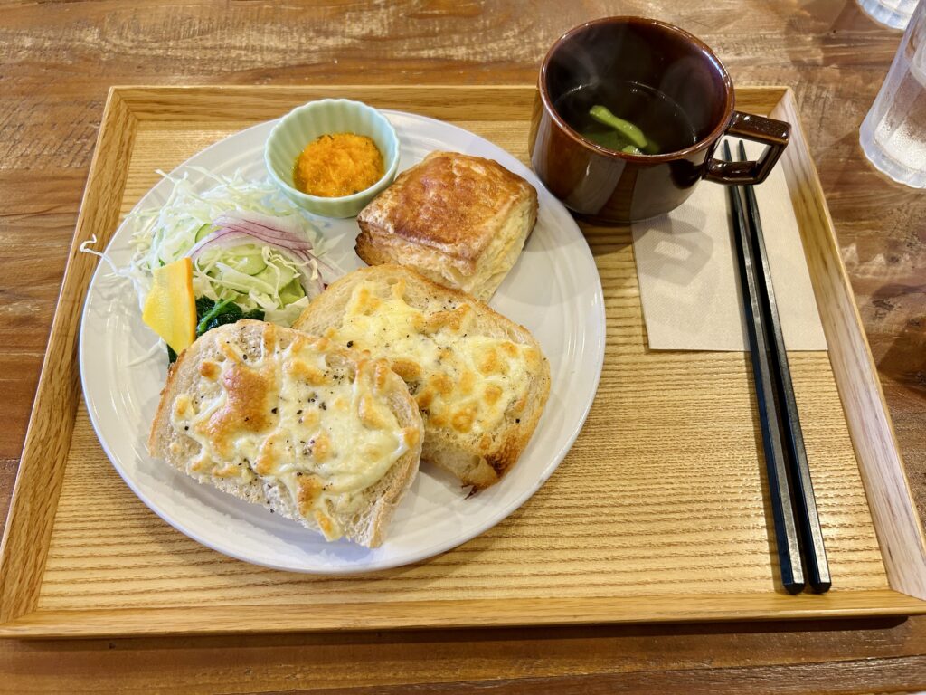 私は 「パン&スコーンランチ」 を注文。パンはサクもち、スコーンはふわサクで食感の違いを楽しめます。サラダも付いていて、ランチにぴったりの量です🥗