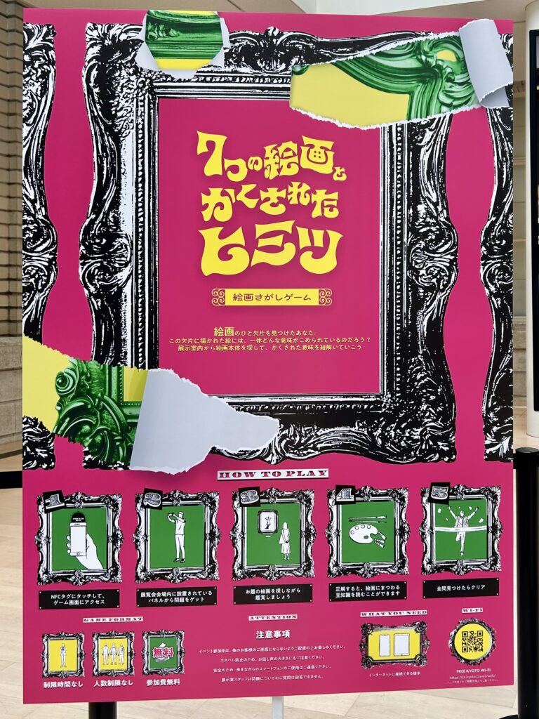 - 参加方法:展示室内のパネルにスマホをタッチし、表示されるクイズに解答。7つの絵画に隠されたヒミツを解き明かしていく。