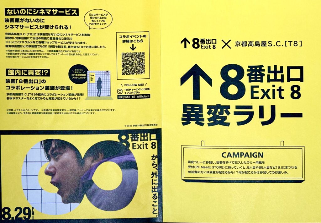 2025年8月8日(金)~9月4日(木)の期間中、京都高島屋S.C.専門店ゾーン「T8」で、2025年8月29日(金)公開の映画『8番出口』の特別イベントが開催されていました。私も早速体験してきたので、その様子をレポートします!