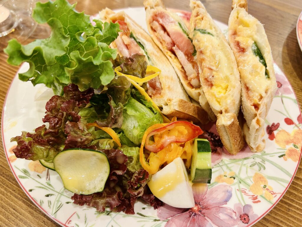 今回はホットサンド(BLT)とホットケーキを友達とシェアしていただきました。