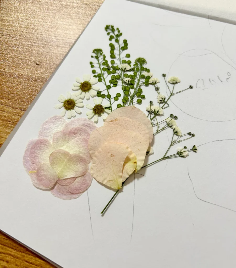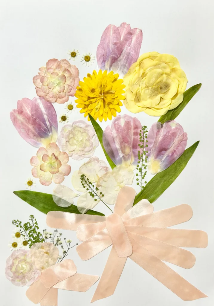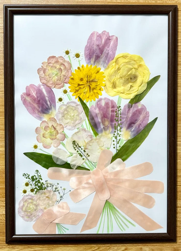 そこで挑戦したのが、押し花で作るアフターブーケです。